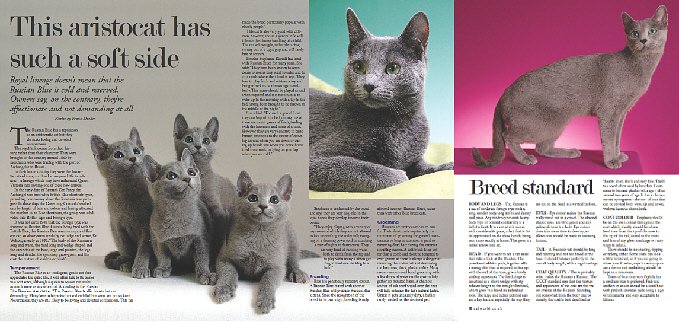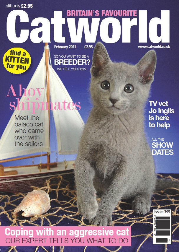 Februar 2011, Kolja von Ramenka ist "Cover-Boy" im englischen Katzenmagazin "Catworld"! Im Innenteil ist er zusammen mit seinen Geschwistern zu sehen und auch unsere Yara schmückt das Russisch Blau Rasseportrait. Vielen Dank an den Fotografen Frank Düker!